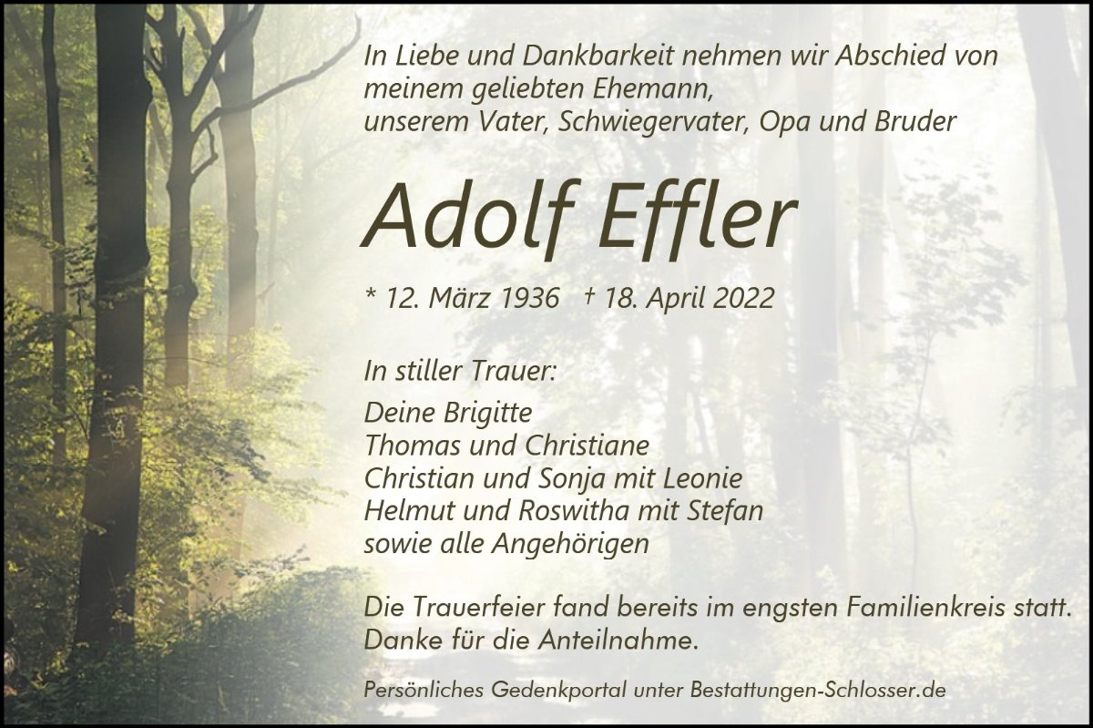 Adolf Efflergestorben am 18. April 2022