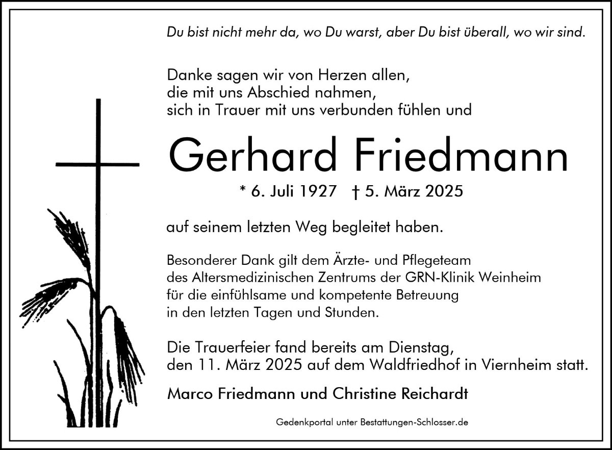 Gerhard Friedmanngestorben am 5. März 2025