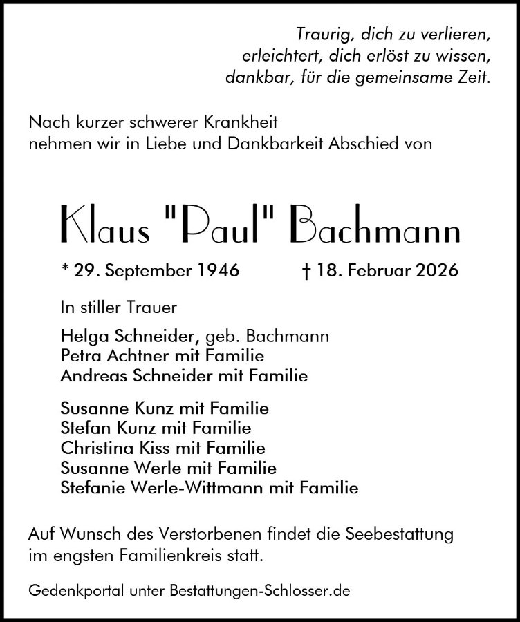 Herzlichen Anteilnahme zum Tod von "Paul".