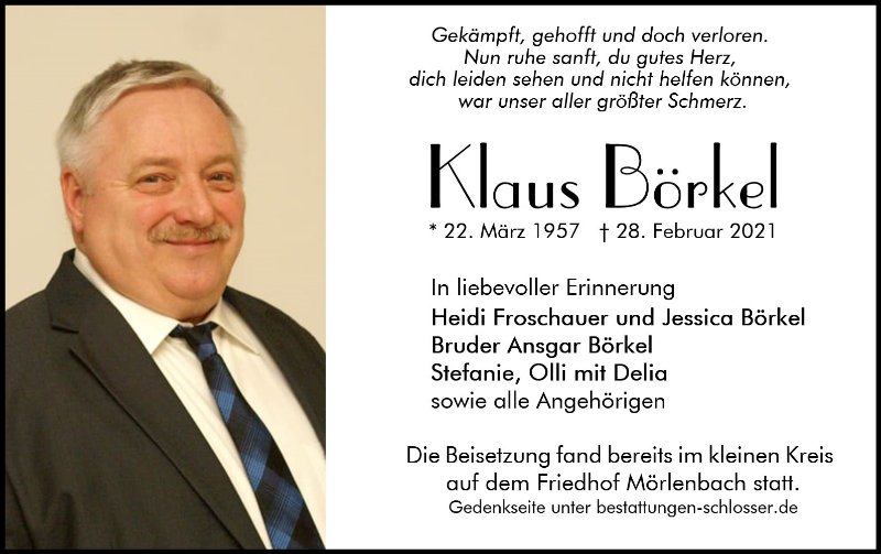 Die Urnenbeisetzung fand bereits in Mörlenbach statt.