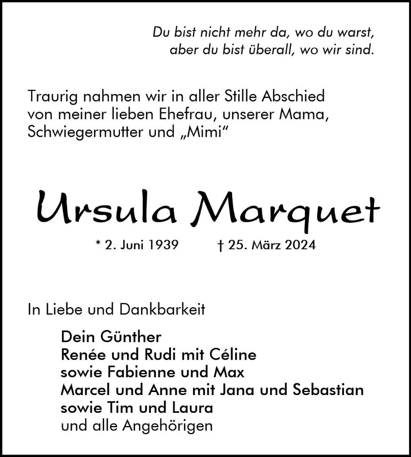 Ursula Marquetgestorben am 25. März 2024