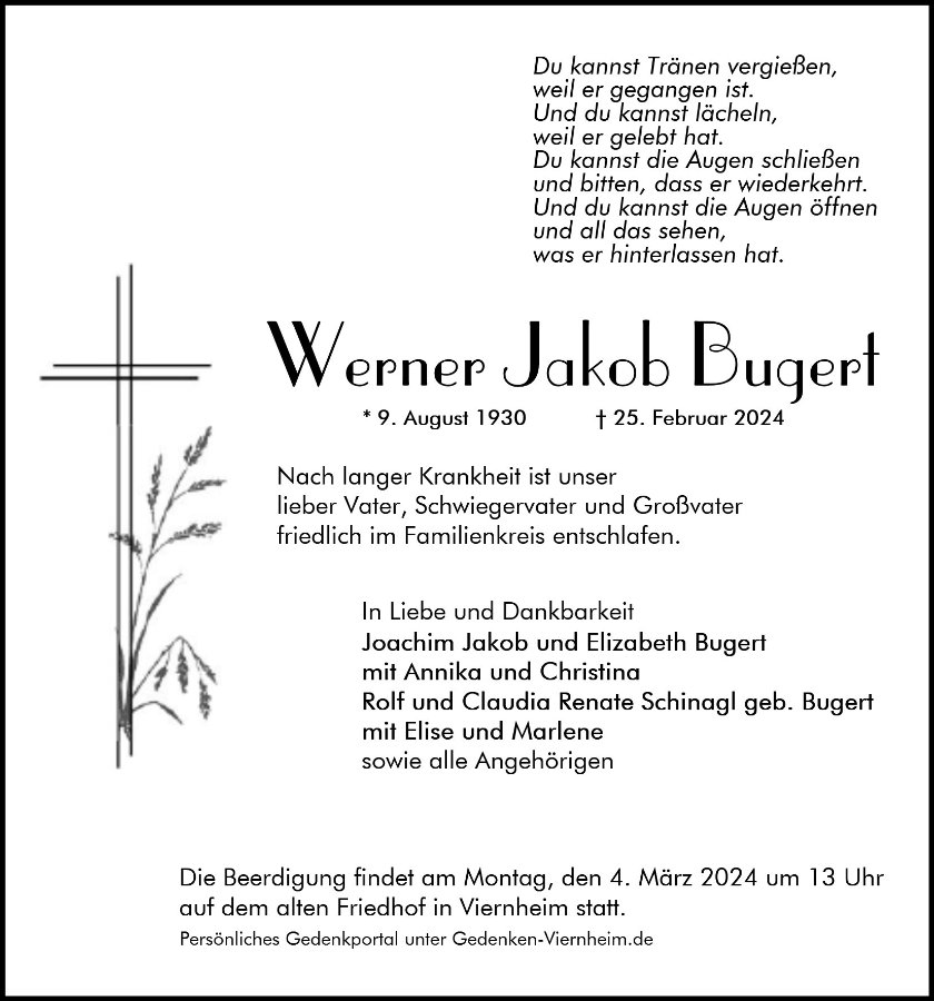 Werner Jakob Bugertgestorben am 25. Februar 2024