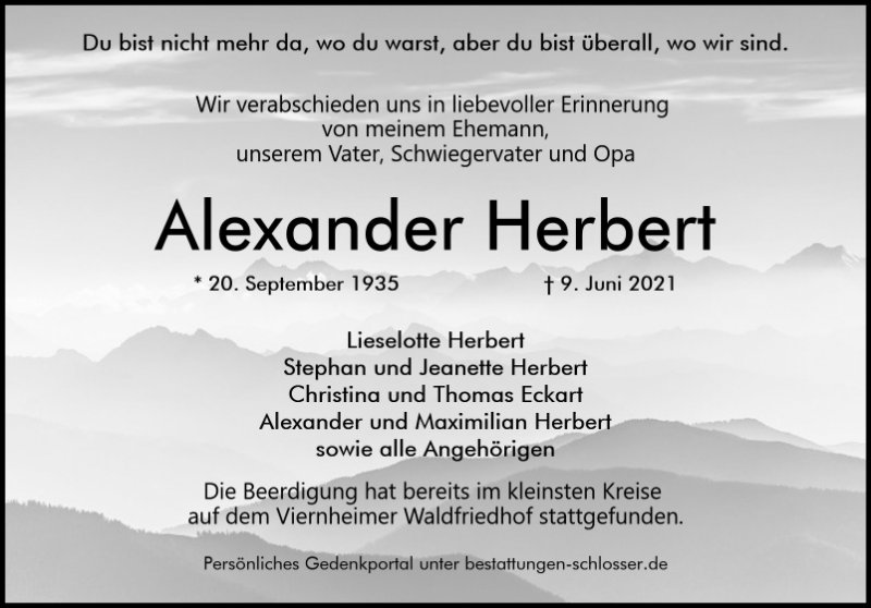 Du bist nicht mehr da, wo du warst, aber du bist überall, wo wir sind.