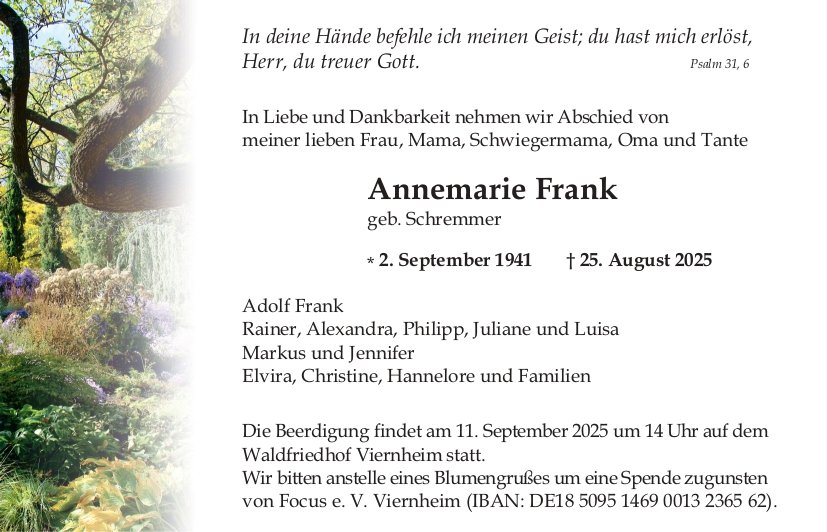 gestorben am 25. August 2025 in Mannheim Neuostheim