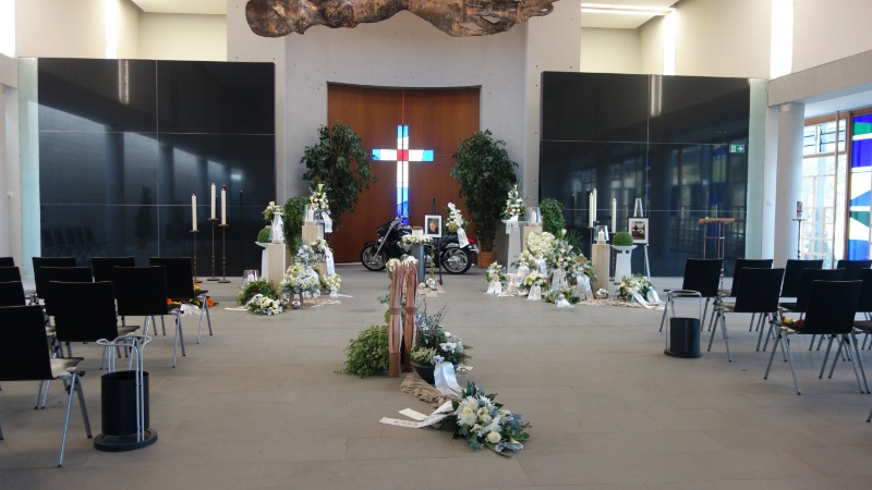Trauerfeier in der Trauerhalle mit anschließender Urnenbeisetzung, Waldfriedhof Viernheim