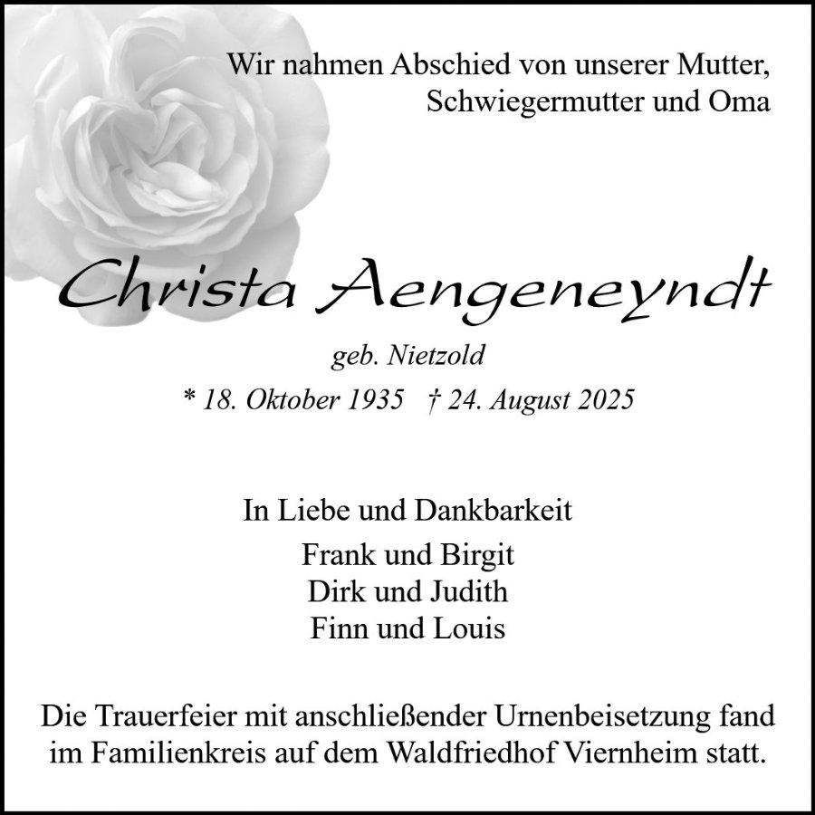 Christa Aengeneyndtgestorben am 24. August 2025