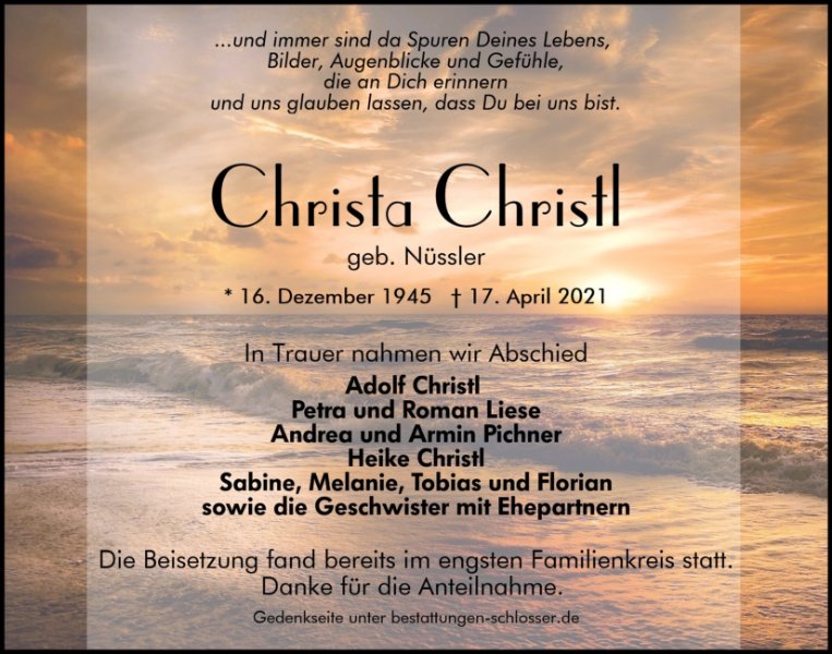 Christa Christlgestorben am 17. April 2021