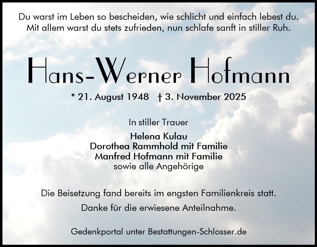 Zum Tod von Hans bekunden wir unser aufrichtiges Beileid.