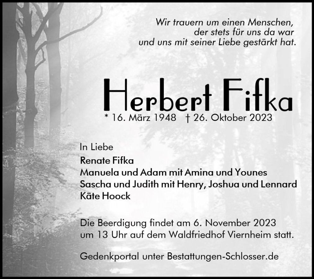 Herbert Fifkagestorben am 26. Oktober 2023