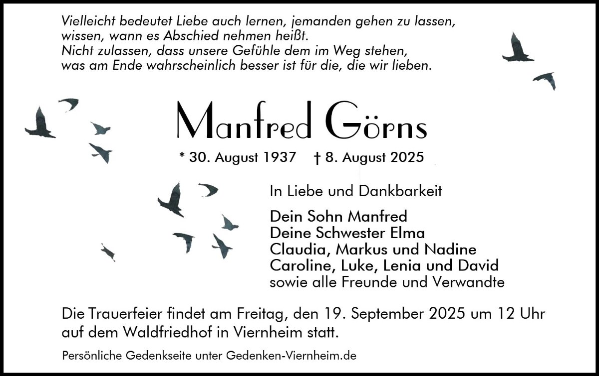 ich durfte Manfred ein kleines Stück seines Weges begleiten. Ich lernte ihn als einen humorvollen, emphatischen, stet gut gelaunten Menschen kennen. Ich mochte seine Art sehr und auch sie als Familie werden mir in Erinnerung bleiben.