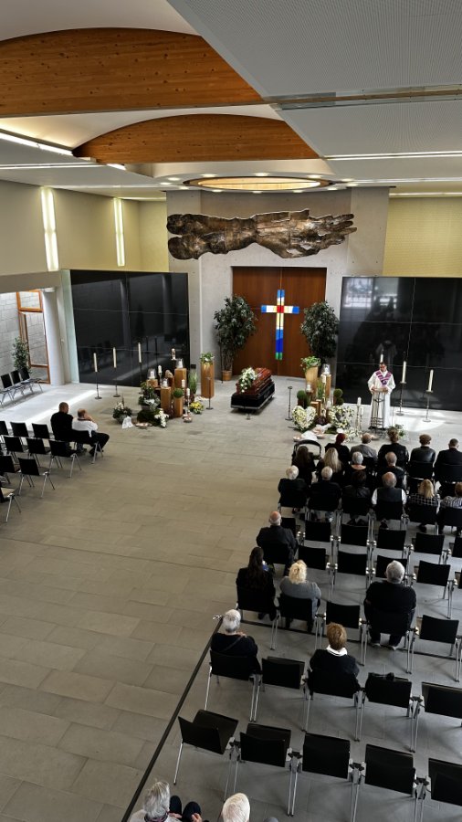 Trauerfeier am Sarg in der Trauerhalle mit anschließender Beerdigung, Waldfriedhof Viernheim